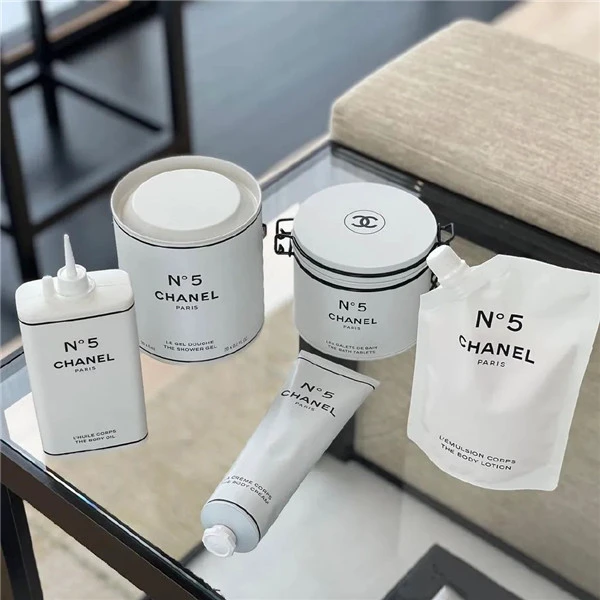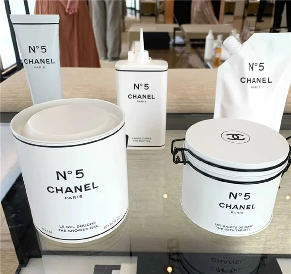 身体乳霜装在条状水彩的容器里、油漆桶里倒进沐浴乳、象是装黏着剂的铁罐里又是香氛精油,还有密封收纳盒的的香氛沐浴球,CHANEL Factory 5 以日常用品为灵感,不过却又颠覆了日常用品的既定功能,出其不意的点子就象是生活中美好的惊喜。