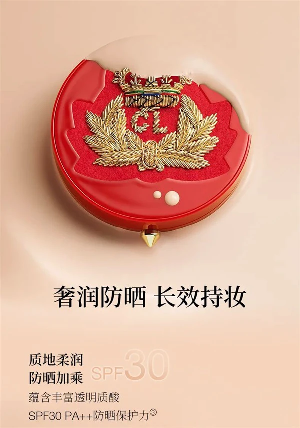 奢润细粉,层层叠加,构筑高倍遮瑕效果,全面提亮和均匀肤色,营造裸妆感。特别设计的气垫粉底液,精准隐匿局部瑕疵,采用成膜技术,上妆后的肌肤细润轻盈,呈现缎面美肌妆效,更可实现12小时长效舒适妆感,自然贴合不脱妆,肌肤闪耀健康光泽。奢华复合微粒,粉质细腻奢润,轻松打造净透钻光奶油肌。护肤级安全成膜技术,12小时卓效贴合,宛若初妆。无惧镜头,时刻闪耀,持久完美无瑕。蕴含透明质酸等多重保湿成分,轻盈舒适,奢润养肤,打造无瑕清透钻光妆感;SPF30卓效防晒,养肤焕颜,尽享每寸肌肤的奢光体验。