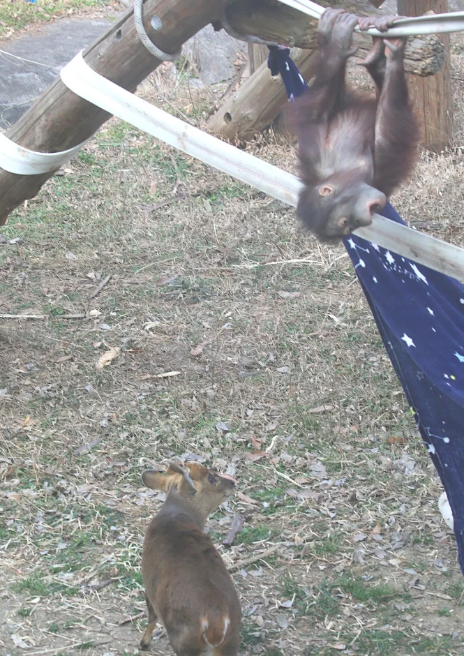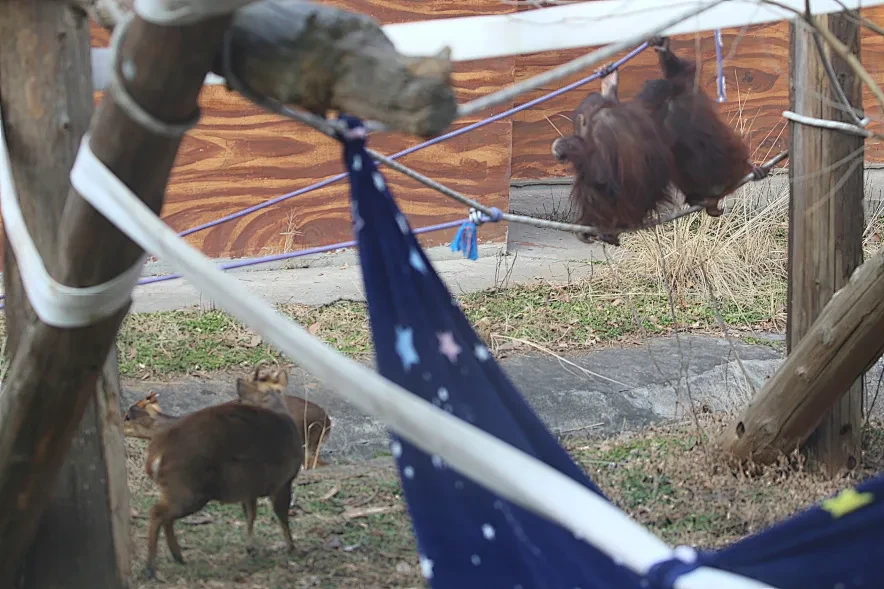 由于獐麂坡的改造,猩猩馆前后分别迎来了两位新朋友——小麂“大王”和“小不点”。