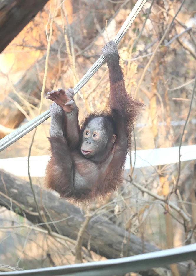只见,红毛猩猩妈妈小律率先出门,作为哥哥的毛栗子带着弟弟毛百万,紧随妈妈之后,一同前往外场玩耍。在他们的日常嬉戏中,不仅增强了彼此间的默契,还大大提升了各自的体能和技能。毛栗子时不时做出一些小动作,企图吸引毛百万的注意,而毛百万则以他特有的方式回应着哥哥的游戏邀请。