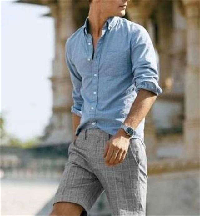 流行“衬衫+短裤”的搭配。衬衫轻薄透气,时尚的版型特显身材;短裤干净利落,完美展现自己的身高。和其他的搭配相比,这才是最适合在夏日穿搭。