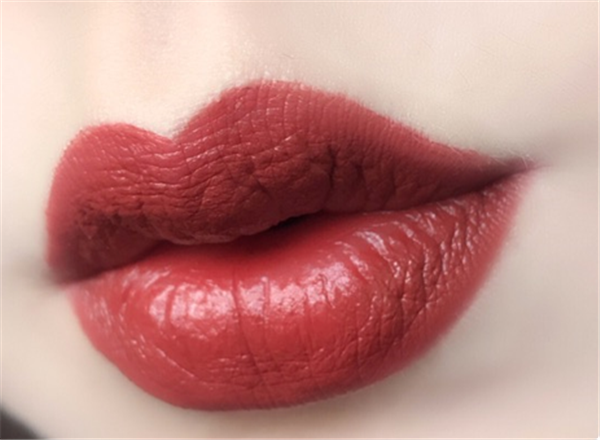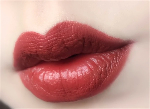 这款是很纯正的棕红色,非常好看,饱和度非常高,秋冬搭配气场up就靠这个加分啦~依旧显白,满满的女人味,膏体润泽顺滑好涂,延展型号有些微光泽感。