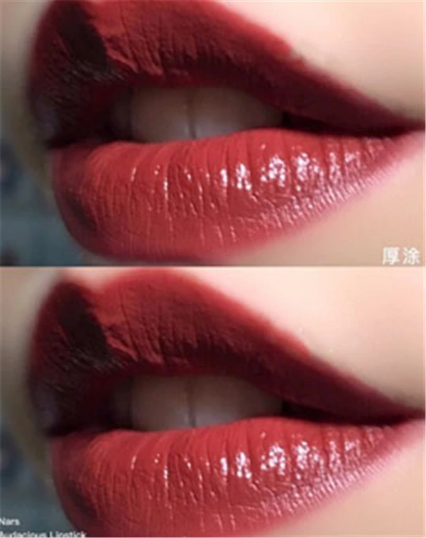 颜色是偏红棕色调,不像姨妈色那么气场浓厚,挑人,这个颜色给人一种温柔的气质感。质地是半哑光的,上嘴特别顺滑,不会卡唇纹。