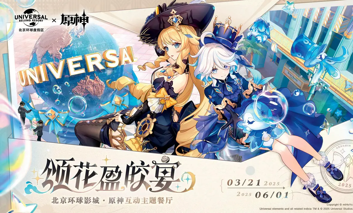 有了上述成功的基础,《原神》官方在用户生态运营上也做到了极致。就好比端游领域的代表作《魔兽世界》一样,《原神》也有专属于二次元用户的世界观和宇宙观,那就是“提瓦特编年史”。更为重要的是,米哈游通过“提瓦特编年史”玩家共创计划,形成2000余个二创社团,哔哩哔哩相关视频播放量超500亿次,进而构建“游戏—社区—衍生消费”的闭环生态,也让《原神》可以牢牢占据核心玩家心智。此番《原神》与北京环球影城联动的“颂花盈皎宴”主题餐厅,正是其内容沉淀的集中爆发,让玩家在现实空间中体验“食宴绘山海”的东方美学。