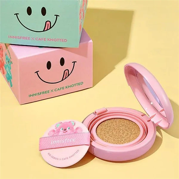与 Innisfree 的 No Sebum Powder Cushion 进行这种可爱的合作,营造出令人愉悦的氛围