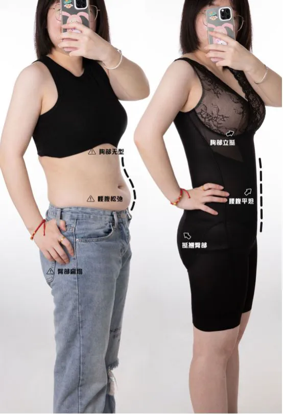 特殊部位优化设计,而不是全身一律用塑形布料挤压。胸部设计有承托力,让胸部更加挺拔。臀部特别设计三根提拉褶皱,改善扁平的妈妈臀,一提一拉打造苹果臀。