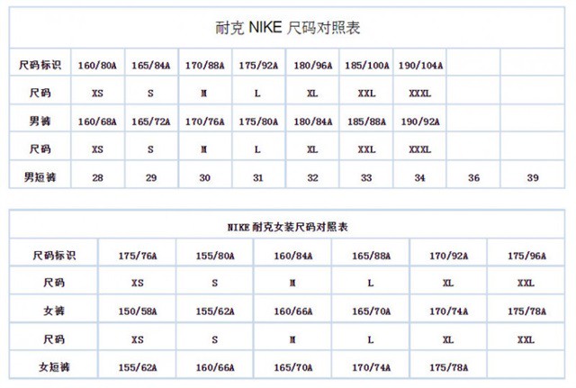 在网购的过程中,也可以联系客服,看看有没有耐克衣服尺码表,然后掌握好这个表格之中的内容,就可以知道自己应该选择什么类型的服饰了。