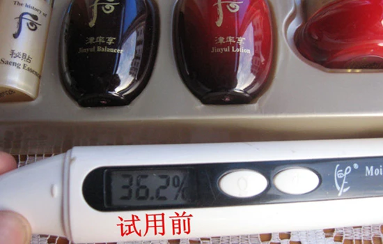 5、由测试仪可得,使用前肌肤水分值为36.2%,肌肤处于干燥的状态。