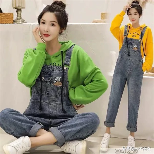 搭配看点:牛仔背带裤搭配卫衣是最基础的搭法,搭得好也能非常抢眼