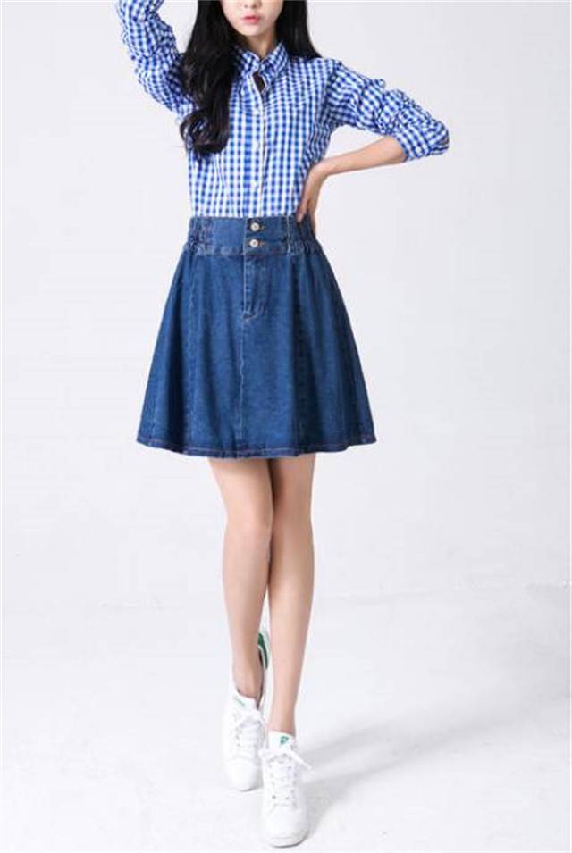 对于牛仔裙不是很贴合人体,腰围大了我们可以选择搭配一根腰带,不仅收紧腰围还能给整身look点缀一些精彩。(除了常用腰带,小编偷偷告诉大家丝巾系做腰带效果很不错哦)注意:选择的腰带材质和颜色搭配要与整体协调。