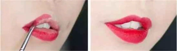 Step8:唇刷蘸取红色口红,勾勒出桃花唇的形状。涂完口红后微微抿一下,会显得更加好看诱人。