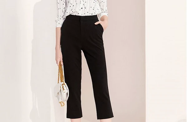 烟管裤在大腿部分较为宽松,在脚踝处有收口设计,这类裤子可以恰到好处地遮盖住粗壮的大腿,搭配上显瘦的黑色,修饰腿部线条效果很好,显瘦又洋气,搭配各种衬衫都很大气。
