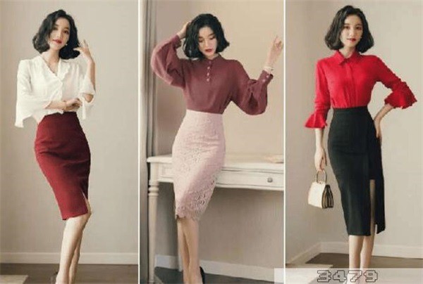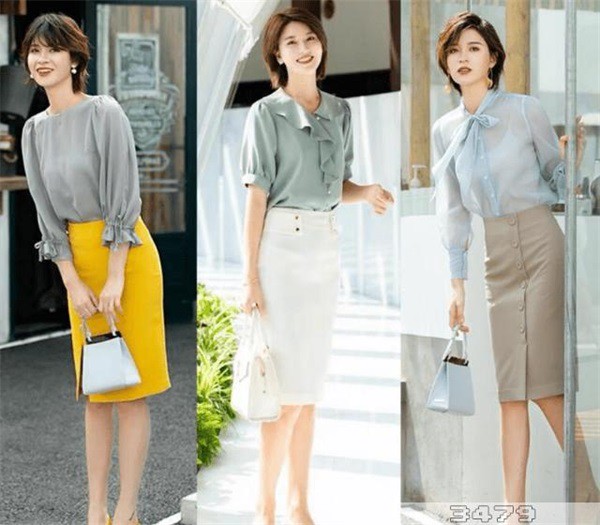 年轻女生不必拘泥于西装裙的职场感,在款式、面料上都能更休闲一些,颜色上也能多尝试彩色,把裙子穿出俏皮元气感。