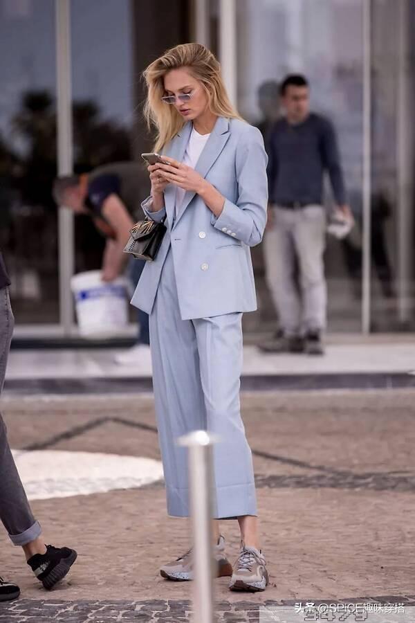 女西装可以搭配运动鞋、高跟鞋、小白鞋,每种搭配都有不同的风格,西装既整洁又显气质