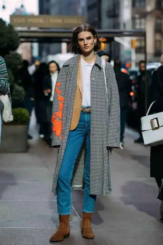 牛仔裤的复古摩登,作为大衣的内搭也是不错的选择,能够自带复古属性,更有自己独特的味道。