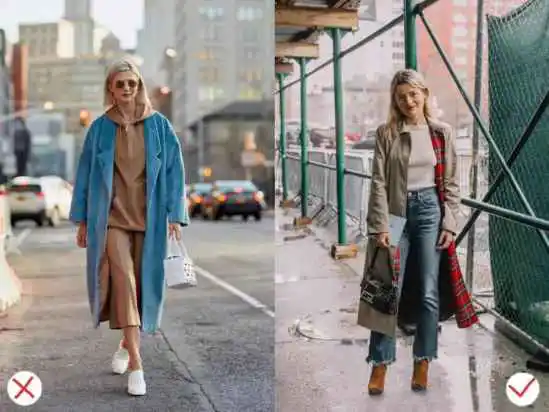 内搭的衣服过于繁杂,会显得自己特别臃肿。只有内搭简洁舒适才能带有显瘦显高的效果。