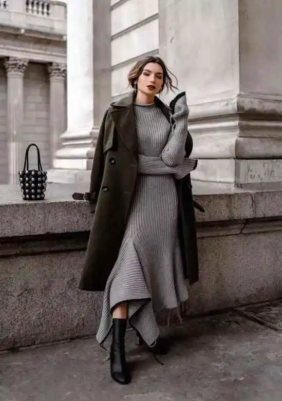 秋冬必备的针织裙,能够凸显女性柔美的线条,显得凹凸有致、气质优雅中略带小性感。