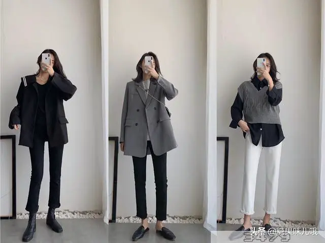 肩宽的女生天生就是衣架子,所以驾驭起没有垫肩款式的小西装也是绰绰有余,内搭选择一件V领的背心或者衬衫,帅气之余又能弱化宽肩的缺点,两全其美不是吗?。
