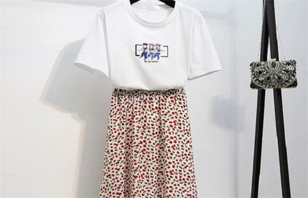 T恤真的是夏季的百搭单品,它不仅可以和牛仔热裤搭,和碎花半身裙的组合也是绝配。用那种小碎花裙搭配一双简单的小白鞋或者一字带高跟凉鞋,上身再穿一件纯色T恤,这样的穿搭在夏季的出镜率也是很高的,整体服装比较偏青春清新一点,也符合现代女性对简单时尚的要求。