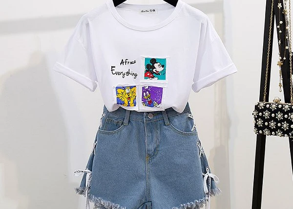 2、T恤+牛仔热裤