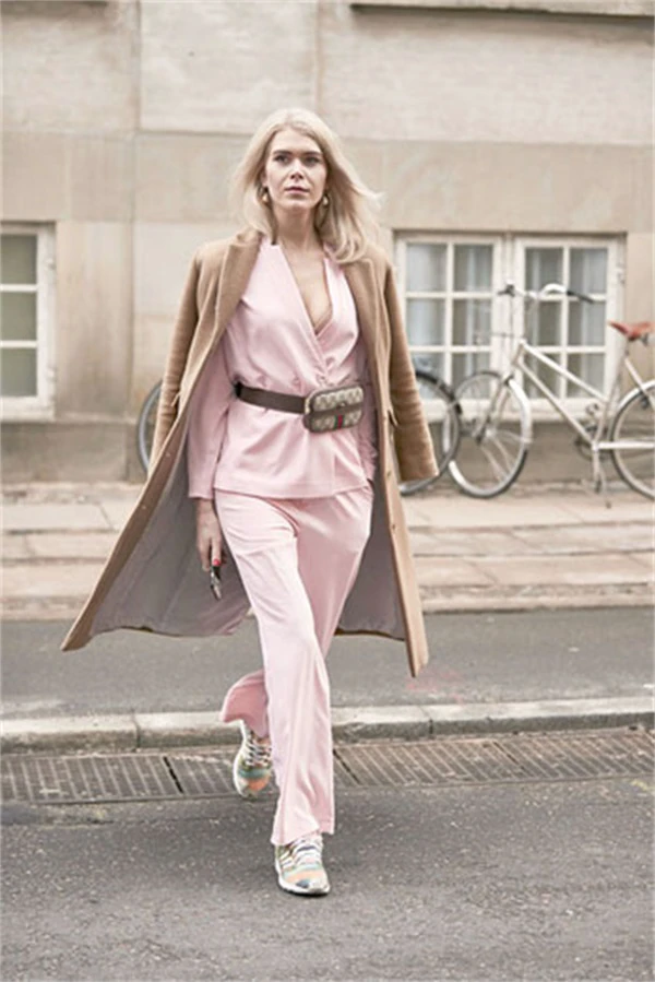 秋季是穿风衣外套的季节,长版的衣摆是时髦的关键,搭配一个短于腰上的侧背腰包,利用刻意不对称的冲突感,使成熟的风衣也变得俏皮。