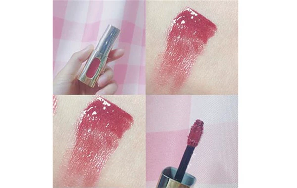 欧莱雅的这个系列的口红外包装都很好看,有一种高级感,金色的外壳,非常有质感,可以从中间看到唇釉的颜色。这个颜色就是今年最好看的枫叶色,颜色超级美,超显白的。