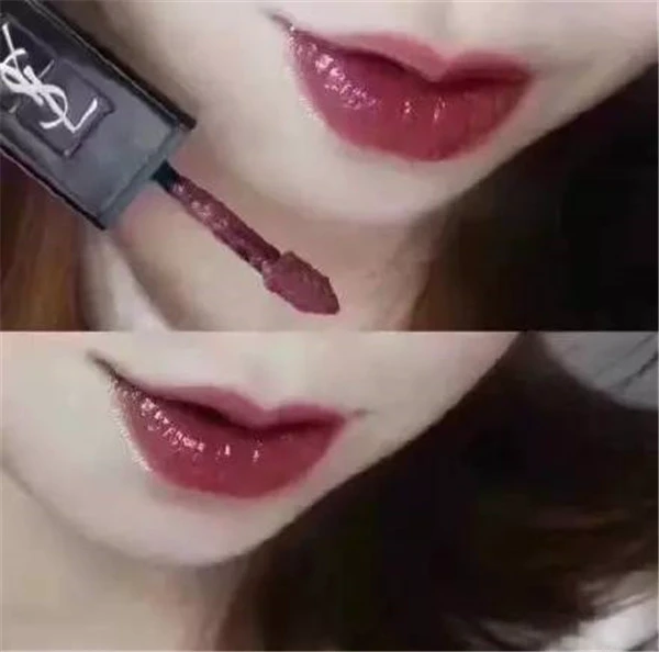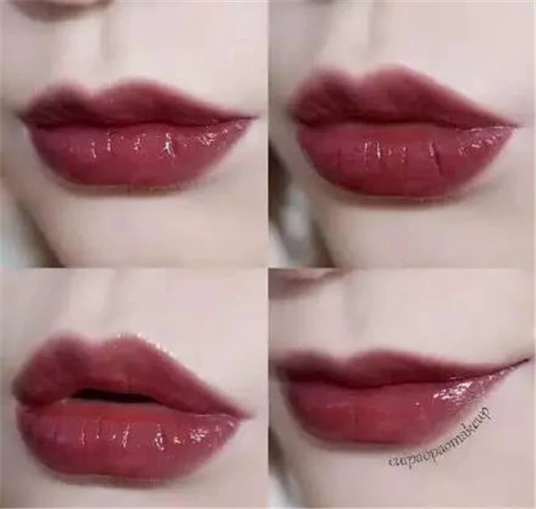 这个颜色上嘴后有点砖红色的感觉,但是颜色的亮度会高一些,颜色真心的好看,带有一些七彩细闪,很显白,而且玻璃唇的质感也很显格调。