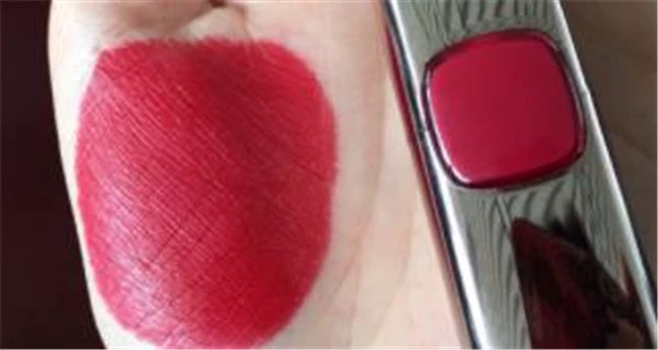 没有紫调,完全就是正宫红,想要气场两米八涂这个就对了。浅涂水红色,叠加个唇蜜妥妥的小草莓一只啊,可功可受的一支口红没错了。哑光口红但是不干,涂起来也是很顺滑的感觉,上色特别棒,遮盖力也是杠杠的,深唇什么的都适合。