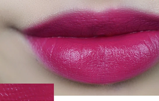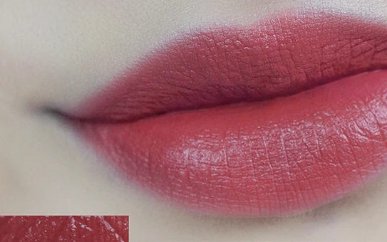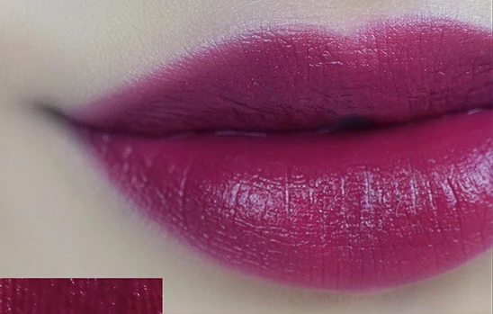 树莓色,甚是喜欢的感觉,颜色有点类似阿玛尼红管502。饱和度偏低,适合秋冬的颜色,很高级。