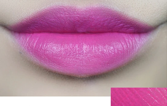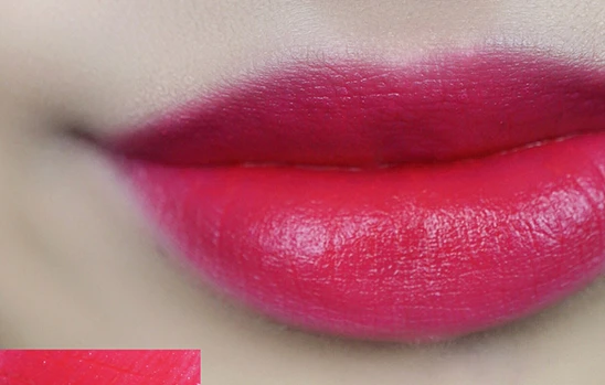很热烈的荧光桃粉色,很跳跃诱人,但是比较适合白皮,肤色偏暗黄的人慎入。