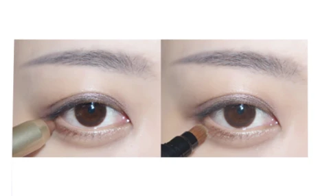 深褐色眼影棒加深下眼睑的后三分之一位置,然后还是用自带的刷子晕染自然。