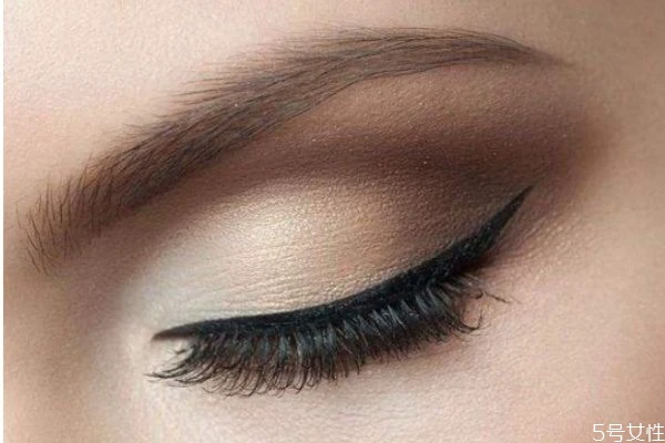 用眼线笔填满睫毛根部,然后画外眼线,至眼尾处上扬