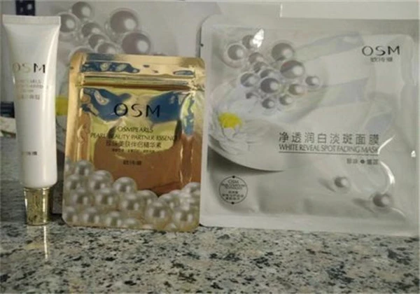 第一步先涂抹珍珠精华膏,质地像酸奶一般,呈乳白色,抹上脸清爽不油腻,可以涂抹至整脸,在美白同时给予肌肤水润呵护。第二步再敷上面膜,膜布手感非常柔软,上脸后很服帖,又十分透气,敷15-20分钟后揭下面膜纸,轻轻按摩皮肤表层就可以。