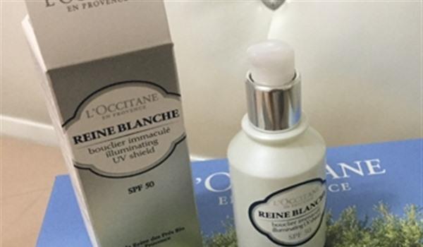 瓶身如白瓷般的质感,高端大气一点也不像是防晒霜而是像一瓶昂贵的精华液瓶嘴是挤压式,虽然没有瓶盖但是为了方便随时能放在包里,所设计的旋转挤压头,需要的时候按住瓶嘴往右边旋一下在按压防晒霜就出来了。不需要用的时候就把瓶嘴往左旋转非常人性化!按一滴在手上,可以看到产品的质地是比较粘稠的,流动性不强。图片右侧涂了防晒,可以看到产品的提亮非常自然。我的手要比脸黑一些,所以这款防晒我上脸是非常服帖自然的,像是涂了素颜霜。从这张图片可以看到,这款产品还有有点油的,并不是特别清爽的路线,更适合像我这样的干皮使用。产品的配方非常详尽,一直相信欧舒丹的牌子,安全可靠。优点:防晒值高,属于隔离,有提亮效果。如果平时出门需要简单的收拾,就只涂这款防晒就可以了。防晒霜,隔离,素颜霜三合一,非常方便。缺点:产品本身不得不说还是偏油腻的,我是干皮也会在炎热的天气,出汗的时候感到油腻,这是唯一不好的使用感受。