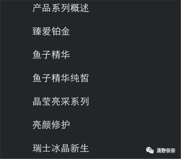 晶莹亮彩系列,这个系列的功效定位不是特别明确,也比较冷门,但有朋友告诉我这个系列比鱼子精华系列更让人惊艳。保湿抗老会更强一些。