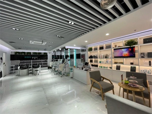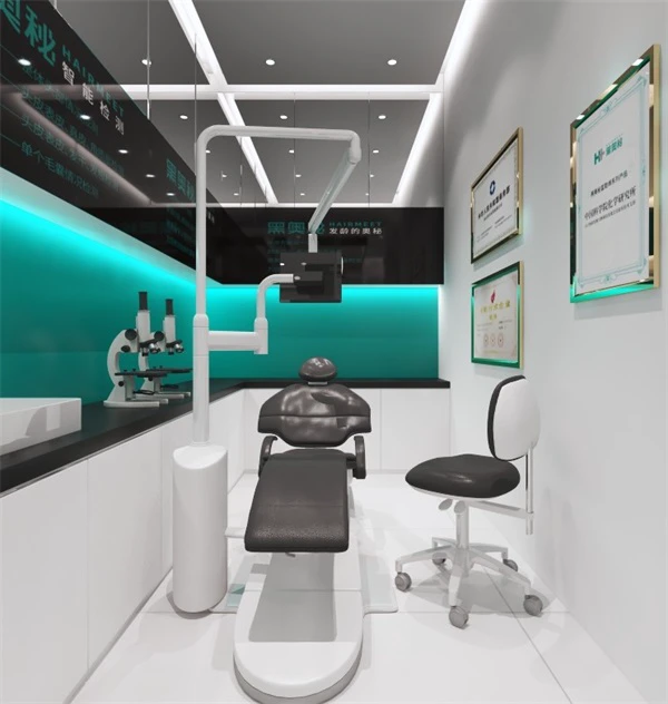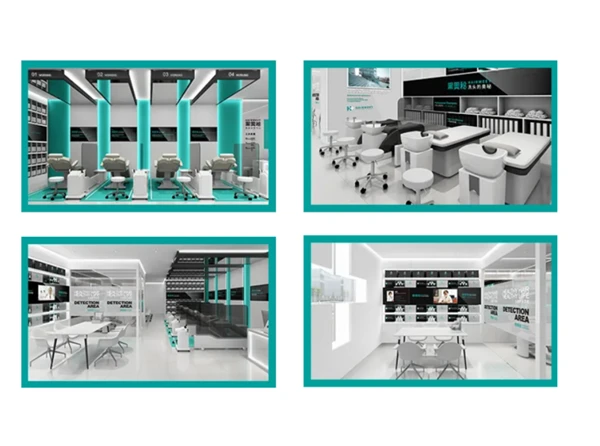 从50米开外就能看到的门头,还有医疗感很强的外侧LOGO墙面“H+”,如同医院检验科一样专业的检测区,用可升降挡板保护顾客体验隐私的洗护区,专门针对脱发和白发的理疗区,以及体验感极舒适的水疗区,整个动线设计即体验流程流畅,让用户一进到店就有头发蓬松头皮轻松的感觉。