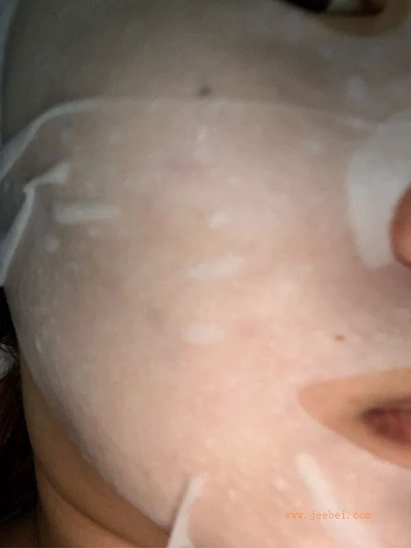 首先呢,面膜纸一拿出来觉得很厚实,我想着完了,我这种强迫症最怕的就是厚实的面膜,每一次敷面膜都是不把它边角揪平整不罢休,但事实上它和其他厚实的面膜纸不一样,反倒是很好的贴合皮肤,虽然面膜纸一点不干,吸饱了精华液,但是拿出面膜后袋子里还是有好多精华。我喜欢把精华先涂到脸上,在把面膜敷上去,这样也能让面膜更服帖一些。 面膜纸甚至20分钟也不会变干,正常敷15分钟后,把面膜揭下来,皮肤有种水光肌的感觉,美白效果完全没看出来,但是敷了七天后下巴上新留的痘印倒是变淡不少 。