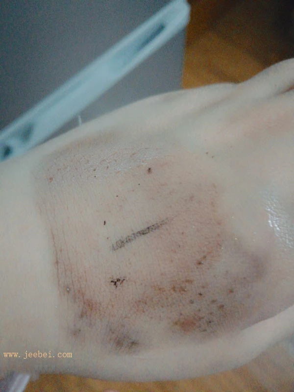 涂抹后用手指轻轻搓揉,这是转圈圈一次的效果,太好了吧~