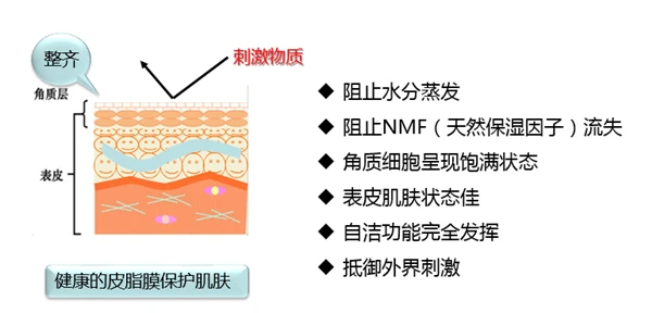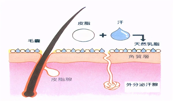 皮脂膜能够防止皮肤水分的过渡蒸发,并能防止外界水分及某些物质大量透入,其结果是皮肤的含水量能保持正常状态。