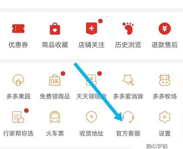 1、进入拼多多后打开个人中心,点击【官方客服】;