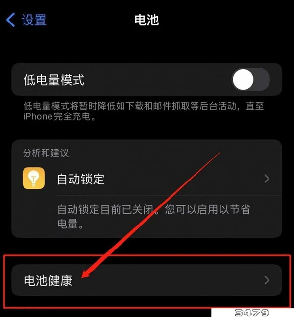 3、进入电池页面后,可以看到【电池健康】一项,点击进入;