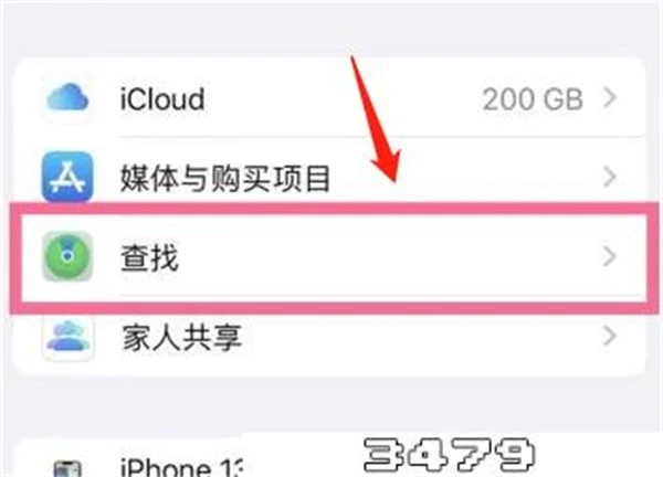 2、点击【查找】,选择【查找我的iPhone】;