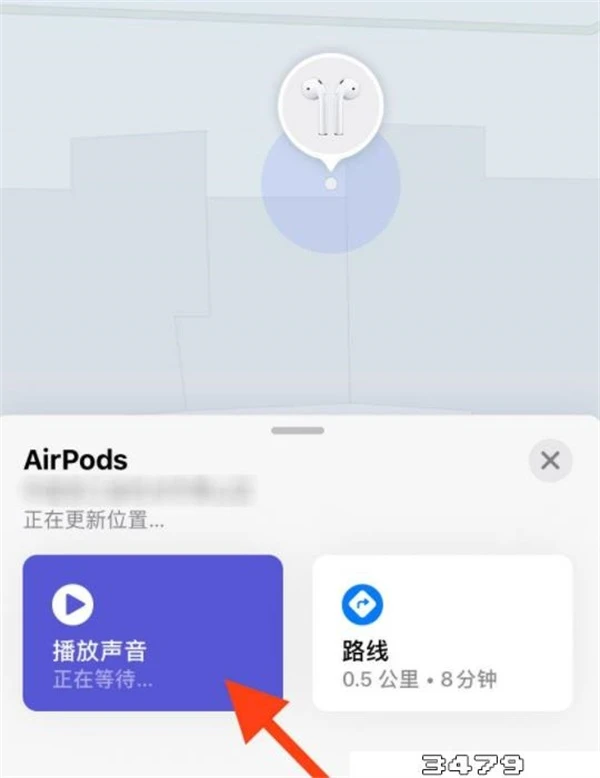 6、到达丢失耳机的位置附近后,可以点击选择【播放声音】,AirPods就会发出声音,便于寻找。