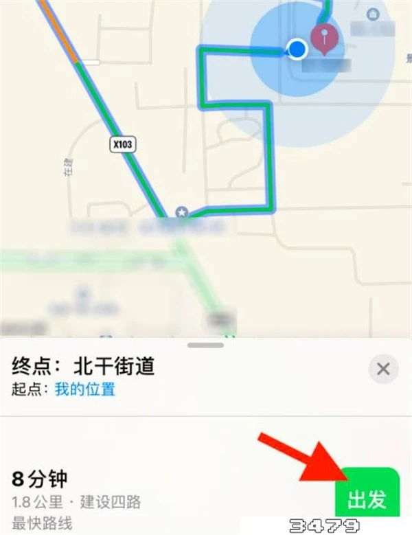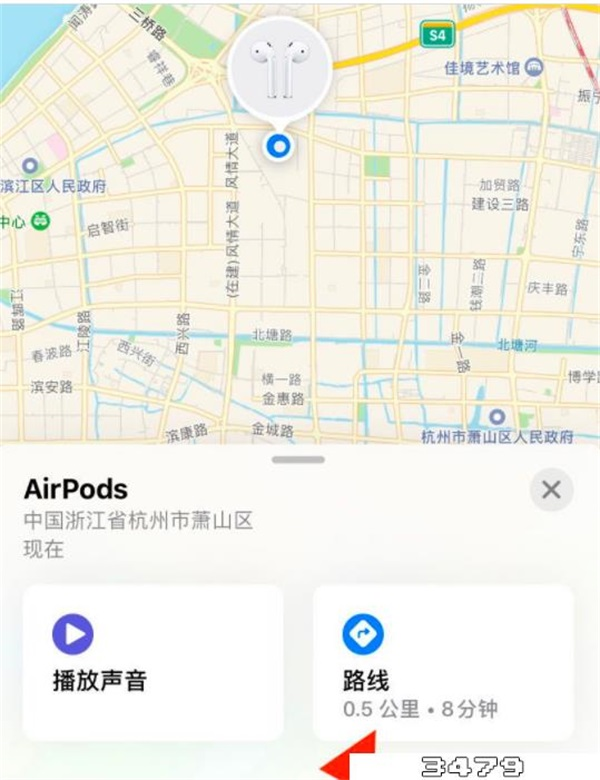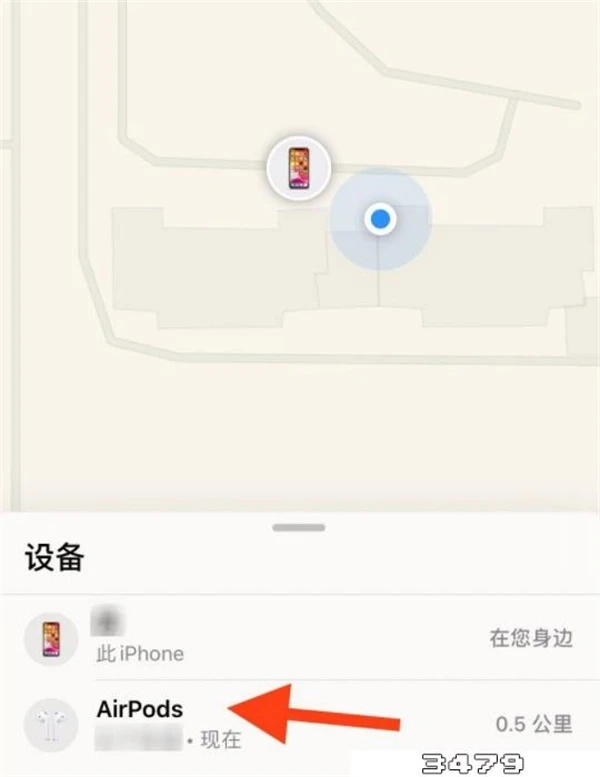 5、系统会自动获取AirPods的位置,点击右下角的【出发】去找耳机;