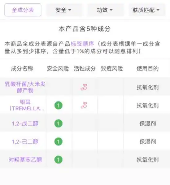 推荐研保湿系列,水的成分可谓是极简啦,只有五种成分,三种抗氧化剂,两种保湿剂,防腐剂使用了多元醇类保湿成分代替,这个成分很喜欢啦,为国产打call!