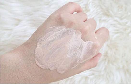 第一步:隔离霜用气垫粉扑来上妆会更加均匀服帖,先挤出适量的隔离乳在手背上。隔离是底妆中非常重要的一步,可以帮助我们隔离彩妆,调整皮肤状态,所以每个角落都要涂到。