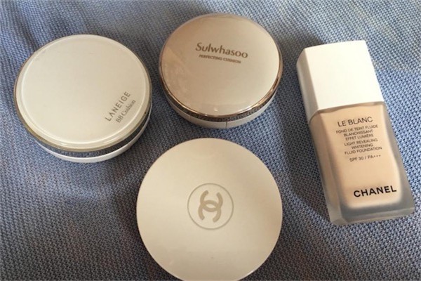 气垫的功效是修饰肤色上颜色不一、暗黄泛红的地方,让肤色变得均匀好看又自然,它还有一点点的保湿效果,有较强的遮瑕作用。定妆粉则是吸附油脂固定妆容的,可避免皮肤油腻。