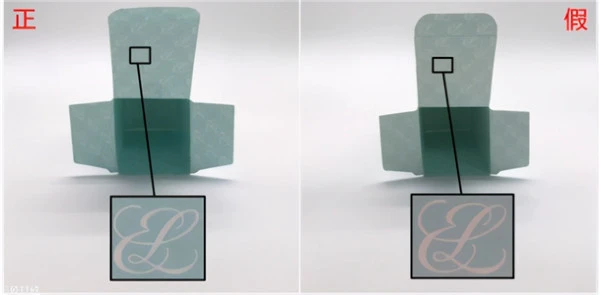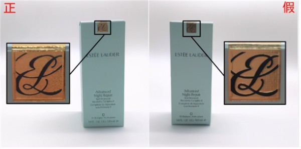 外包装部分只有顶部雅诗兰黛金色logo处,logo标志就很明显的了,假货线条稍微粗一些,金色的底色也不及正品细腻,很劣质~