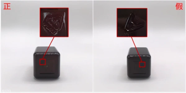 正品瓶底有三角循环标志的压印,中心圆点切割光滑没有多余毛边。假货瓶底只有字母标识,中心小点切割粗糙不够圆润
