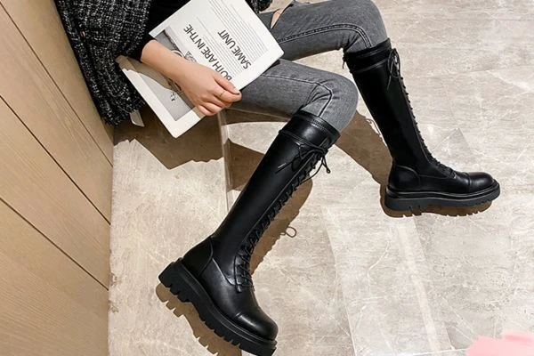 骑士靴看上去非常的英气,骑士靴比马丁靴的筒要长,比过膝靴的筒要短一些,基本在小腿的部分,非常的显瘦显高。骑士靴的绑带就和我们平时的鞋带系法一样,只不过骑士靴的鞋带比较长,所以系起来会有点麻烦。